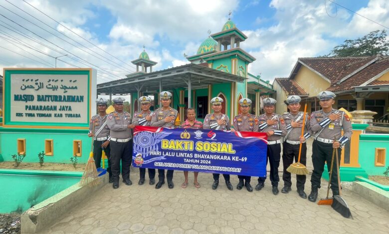 Lampungberjaya.com Tulang Bawang Barat—-Dalam rangka menyambut HUT Lalu lintas Bhayangkara ke 69, Satuan Lalu lintas Polres Tulang Bawang Barat Polda Lampung melaksanakan kegiatan Bakti Religi yang digelar di Masjid Jami Nurul Huda dan Masjid Baiturrahman Kel Panaragan Jaya Kec.Tulang Bawang Tengah Kab.Tulang Bawang Barat, Sabtu (07/09/2024) Pagi
