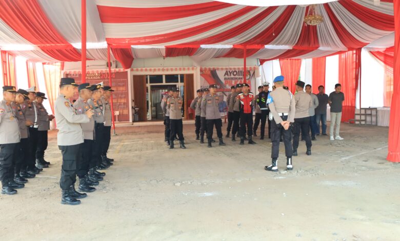 Amankan Rapat Pleno Penetapan Calon Kepala Daerah Personil Polres Tulang Bawang Barat Lakukan Apel Pengaman