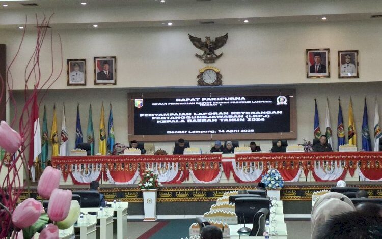 Lampungberjaya.com – Dewan Perwakilan Rakyat Daerah (DPRD) Provinsi lampung Menggelar Rapat paripurna penyampaian Laporan keterangan pertanggungjawaban (LKPJ) Kepala daerah tahun anggaran 2024, Yang berlangsung diruang rapat paripurna DPRD provinsi lampung setengah, Senin (14/4/2025).